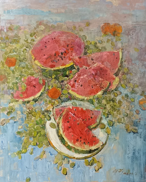 Ирина-большая поклонница импрессионистов, влияние которых мы часто видим в ее произведениях-яркая палитра, построенная на чистых тонах, и разнообразие тончайших цветовых отношений, достигнутых смелыми , уверенными мазками.