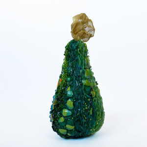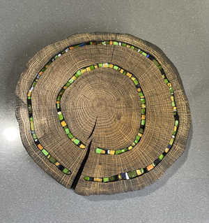 "Подставка под горячее", спил дуба, мозаика стекло, зеленый