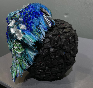 "Подставка под горячее", спил дуба, мозаика стекло, красно-черный
