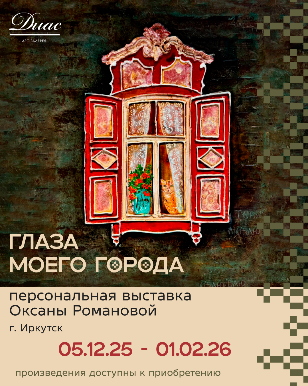 С 5 декабря 2025 года по 1 февраля 2026 года в арт-галерее «Диас» (г. Иркутск) пройдёт персональная выставка художницы Оксаны Романовой — «Глаза моего города».
